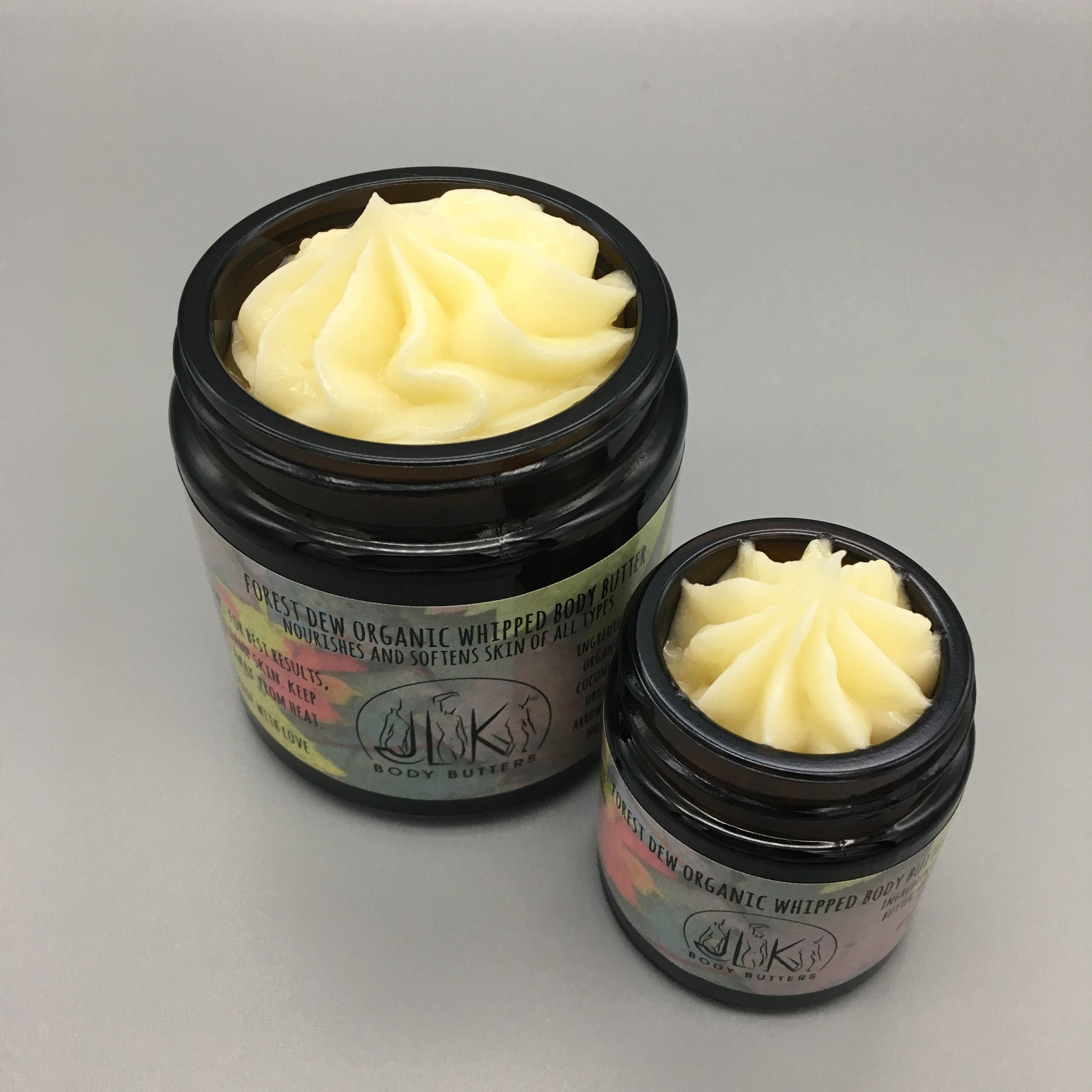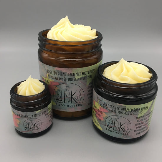 Our Forest Dew Organic Whipped Body Butter is a classic androgynous scent that smells like taking a walk in the forest. You'll love the sultry warm rustic woody scent with its musky overtones of ginger and warm amber, and refreshing undertones of pear, vanilla and lily of the valley. This butter, complex and not too sweet, will leave you refreshed and wanting more.