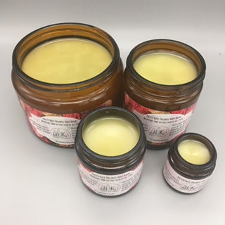 IF YOU LIVE IN WARMER CLIMATES OR ARE SHIPPING DURING THE SUMMER, THE BODY BALMS MAY BE MELTED UPON ARRIVAL. LET SIT AT ROOM TEMPERATURE OR PLACE IN THE REFRIGERATOR BEFORE OPENING UNTIL IT HAS RE-SOLIDIFIED BACK TO ITS BUTTERY GOODNESS. PRODUCT MAY BE PREVIOUSLY FROZEN BEFORE DELIVERY IN ATTEMPT TO PREVENT BODY BALM FROM MELTING IN ROUTE TO YOU. IF MELTING OCCURS, OUR BODY BALM RETAINS ALL ITS BENEFITS AND IS NOT AFFECTED.